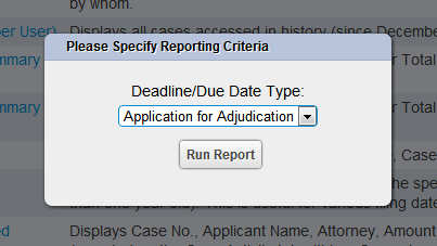 - The Upcoming Due Dates report lets you specify a Deadline/Due Date Type when generating the report.