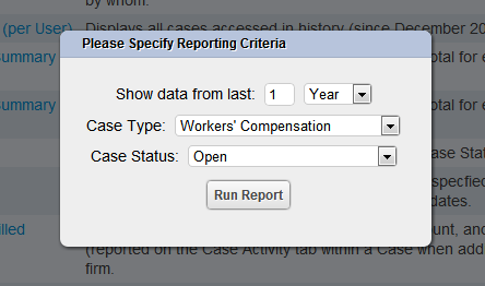 - The Date of Injury report now lets you specify a custom time range, case type, and case status.
